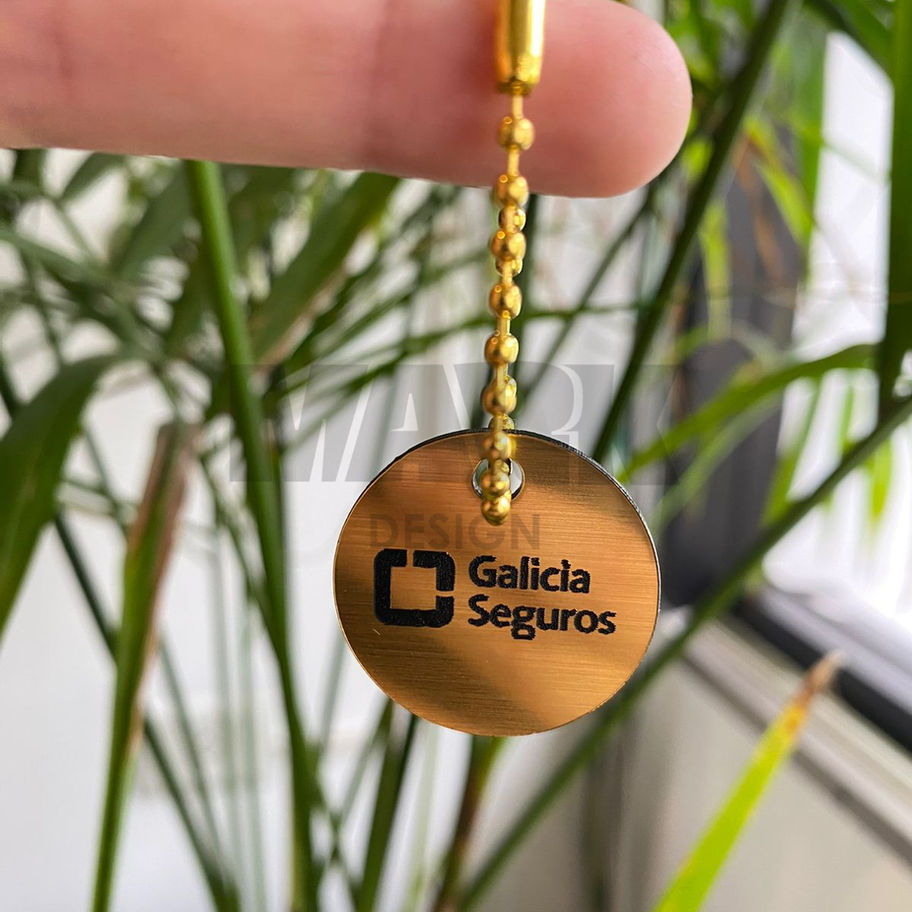 Metalex dorado con diseño grabado láser + cadena de bolitas.